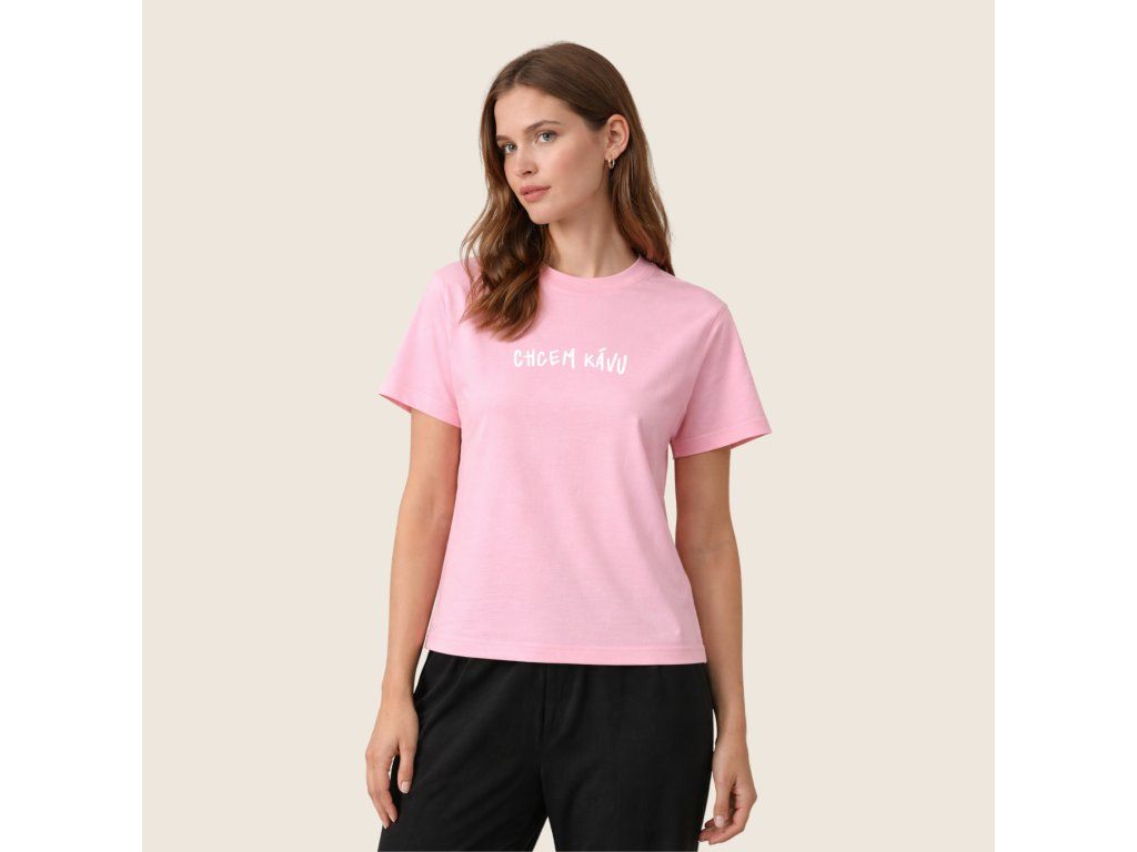 Dámske tričko (candy pink) - Chcem kávu