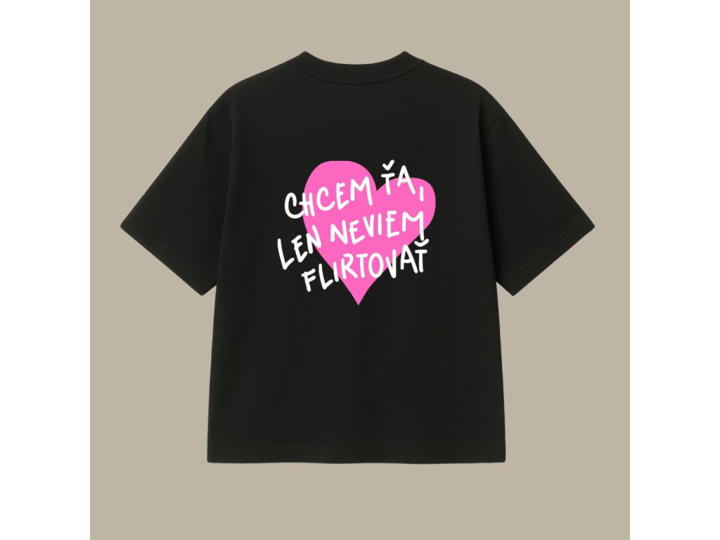 Oversized UNISEX tričko (čierna) - chcem ťa, len neviem flirtovať