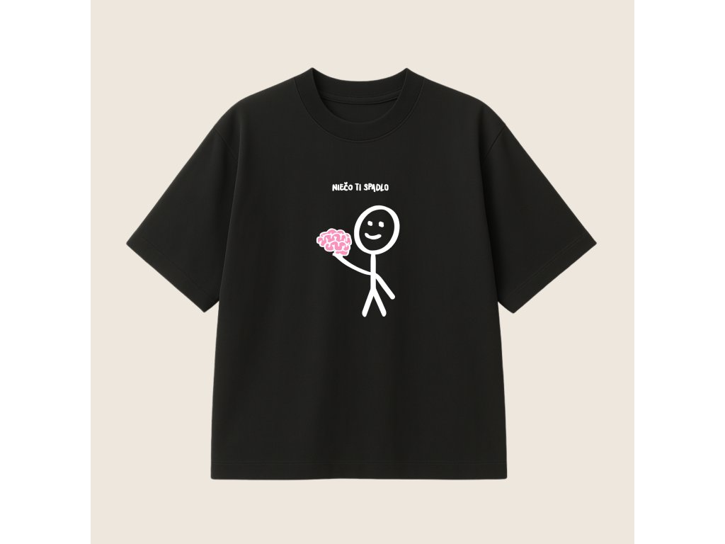 Oversized UNISEX tričko (čierna) - Niečo ti spadlo