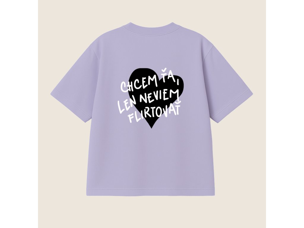 Oversized UNISEX tričko (fialková) - chcem ťa, len neviem flirtovať