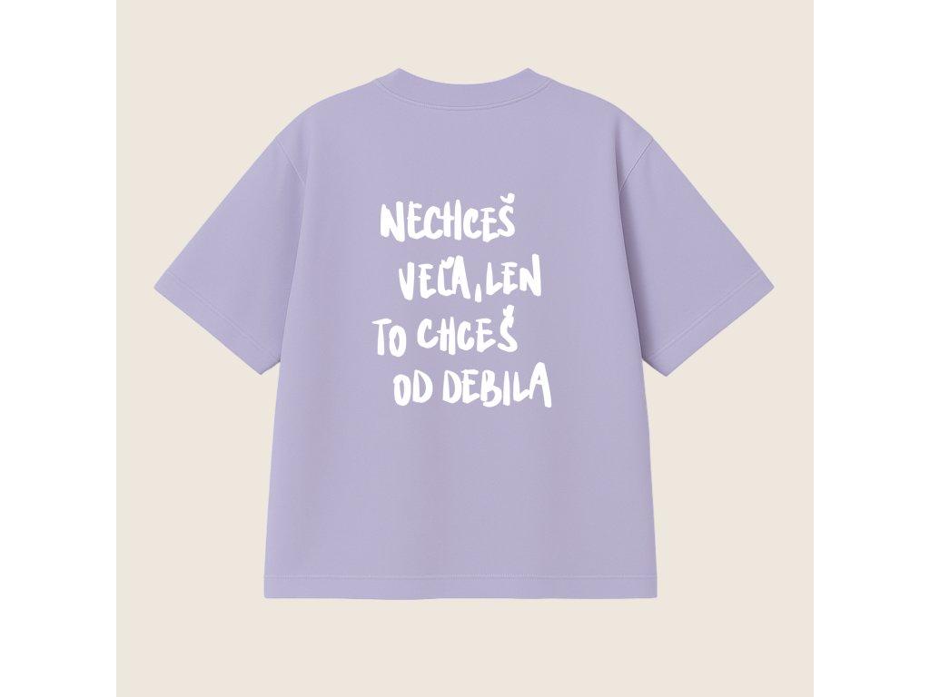 Oversized UNISEX tričko (fialková) - Nechceš veľa, len to chceš od debila