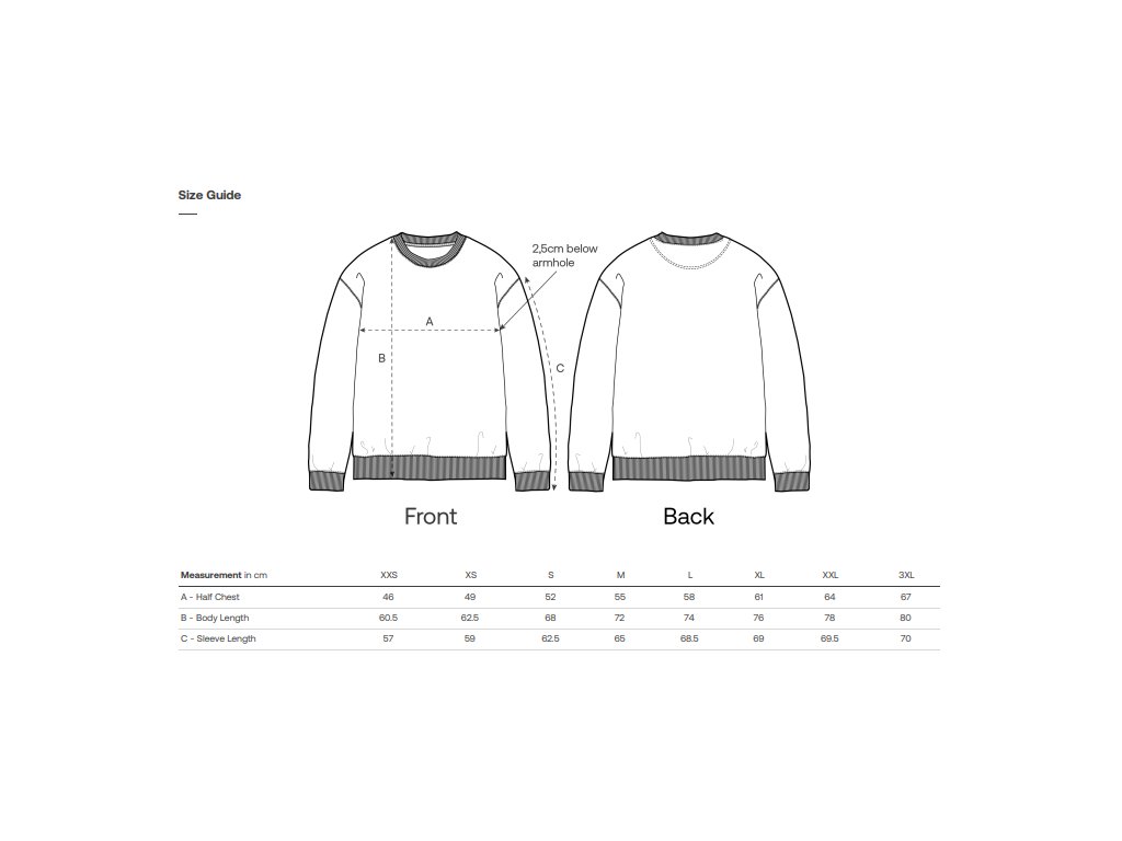 *Merané šírkou oblečenia 1 cm pod pazuchami.