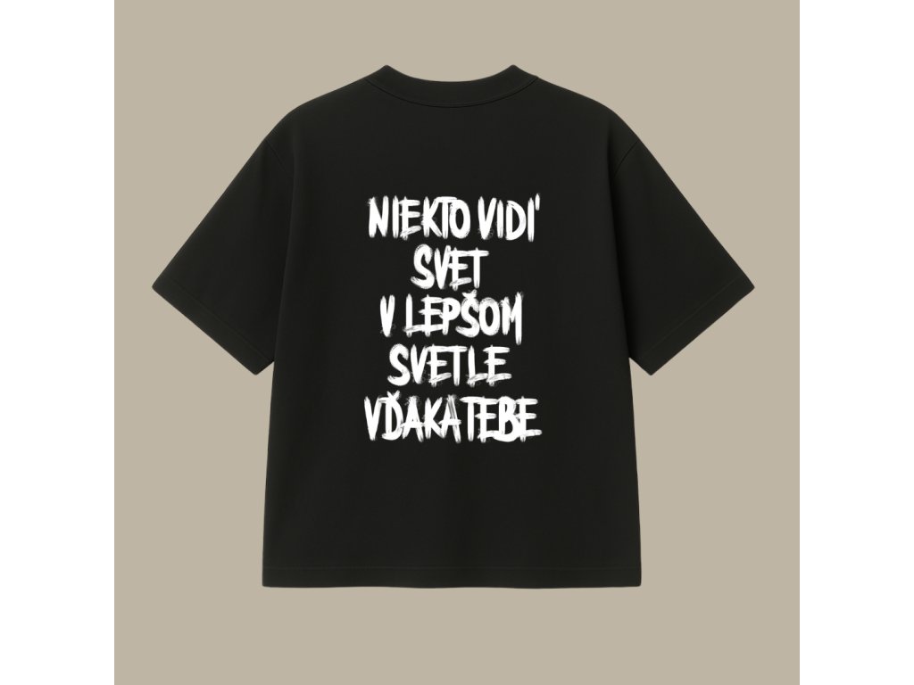 Oversized UNISEX tričko (čierna) - Niekto vidí svet v lepšom svetle vďaka tebe