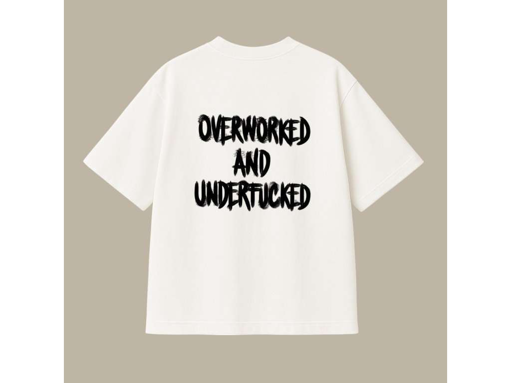 Oversized UNISEX tričko (off white) - Overworked and underfucked