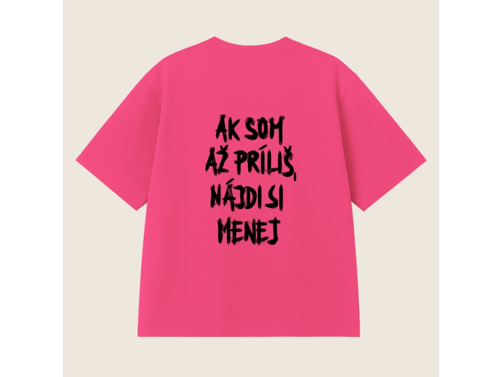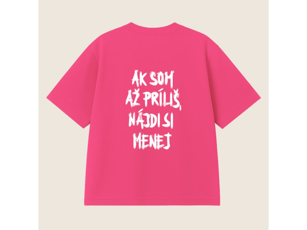Oversized UNISEX Tričko (ružová) - Ak som až príliš, nájdi si menej